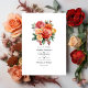 Convite para casamento floral vermelho, laranja e sábio. Ideal para qualquer tema ou casamento de jardim. O código QR no verso direciona para o seu local de casamento onde o pessoas pode aprender mais e rsvp.