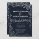 Folha de prata elegante, moderna e quic desenhada manualmente com folha de prata desenhada floral, folhas e padrão de videira sobre um simples fundo azul sofisticado de marinho com folha de prata impressa falsa e personalizada tipografia de videira Casada Convites de Casamento. Este design clássico e sofisticado é perfeito para o casal de competição de tendências e na moda. É luxuoso, ornamentado, popular, glamourosa, e bonito! ***NOTA DE DESIGN IMPORTANTE: Para solicitações personalizadas relacionadas a mudanças de aspectos de design, incluindo trocas de cores ou produtos correspondentes, ou qualquer outra pergunta relacionada a design, clique no botão do designer "Mensagem" e teremos o prazer de fazer quaisquer alterações ou até criar um novo design personalizado para você.