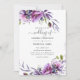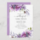 Violeta empoeirada e convite de casamento floral roxo com tipografia elegante de escrita manual concebida para ser rápida e facilmente personalizada de acordo com as especificações do seu evento.