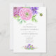 Convite de casamento de aquarela botânica com sotaque ultra violeta, ameixa e verde-sábio. As flores apresentadas são ranúculus, tulipas, violetas e crocos com forte influência impressionista chinesa.