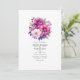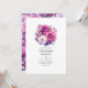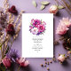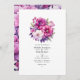 Convite de casamento floral violeta e rosa. O código QR no verso direciona para o seu local de casamento onde o pessoas pode aprender mais e rsvp.
