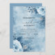 Uma lavagem sonhadora de azuis profundos e brancos legal evoca uma atmosfera serena e envenenada. Elementos florais delicados e sotaques brilhantes criam um motivo sofisticado e encantador. Este design é perfeito para um casal que procura uma união elegante e atmosférica.