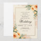Delicar floridas de pêssego e molho de folhagem verde macio este design romântico com uma sensação quente e vintage. O efeito de lavagem a aquarela adiciona um toque artístico sutil, perfeito para uma celebração gentil e inspirada na natureza.