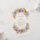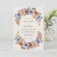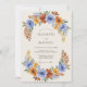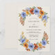 Uma encantadora exibição de flores profundas azuis e vibrantes laranja, acentuadas com ramalhetes de folhagem e delicadas bagas. Esta composição artística evoca um sentimento quente e outonal, perfeito para uma reunião romântica.