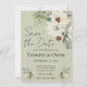 Este belo convite para o casamento apresenta flores brancas, eucalipto, e pinos cones, contra um fundo verde de sábio rústico. "Salvar a data" é gravado na parte superior em letras grandes. Personalize os detalhes para atender às suas necessidades e não se esqueça de mudar as iniciais na parte de trás da noiva e do noivo!