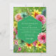 Celebre sua união com um design botânico exuberante e vibrante. Um fundo verde limão prepara o cenário para uma explosão de flores pintadas em tons de rosa quente, amarelo ensolarado e rosa suave. Dahlías em aquarela, rosas românticas e suculentas teal únicas criam um arranjo alegre para uma ocasião alegre.