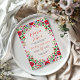 Este design de Convite Folclórico Botânico Floral Elegante Mexicano para Casamento Folclórico apresenta uma fronteira floral vibrante e simétrica com flores vermelho-arrojadas, rosa e marrom entrelaçadas com ramos verdes folheados e delicados aglomerados de bagas de laranja. Os motivos botânicos formam uma estrutura arqueada ao longo das bordas superior e inferior, curvando-se para dentro para criar um elegante espaço branco em forma oval no centro. O olhar geral é animado e folclórico, evocando um senso de festividade e calor perfeito para ocasiões celebratórias como casamentos ou festas de jardim.