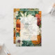 Convite floral verde e esbranquiçado para o casamento com sotaque marrom e laranja. Ideal para um casamento no jardim.