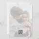 Este Convite Formal para Casamento Único Elegante Bold Script Photo Black and White apresenta uma bela caligrafia vertical e tipografia moderna, e é totalmente personalizável com duas de suas fotos, nomes, detalhes de casamento e um código QR para seu site de casamento. O tema clássico preto e branco é perfeito para casamentos em qualquer estação.