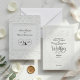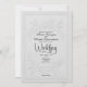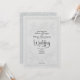 Defina um tom de luxo sofisticado para o seu dia especial com este design minimalista perfeito para uniões de gala pretas de luxo. A obra de arte apresenta um efeito de letterpress cego falso branco sobre branco impresso com detalhes intricados de escultura botânica e uma silhueta romântica sutil. Fácil de personalizar com seus detalhes.