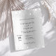 Um convite de casamento moderno, minimalista e formal. Um fundo com aspecto fino de prata decorado com falso brilho. Personalize e adicione seus nomes e detalhes. Letras pretas coloridas.