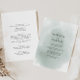 Esta caligrafia verde para trás e o convite formal para o casamento é perfeito para um simples casamento. O design simples e elegante apresenta a tipografia de scripts clássicos e ricos em um fundo verde e cinza. Salve o papel, incluindo mais detalhes na parte traseira do convite em vez de em uma placa de gabinete separada.