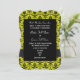 Elegante convite de casamento formal tradicional vintage retro de damasco amarelo e preto brilhante, personalize facilmente os nomes da noiva e do noivo nos modelos para criar um convite personalizado único para suas ocasiões especiais e celebrações. Visite a LOJA DE CASAMENTOS PERSONALIZADOS para conjuntos de suites de casamento coordenadas.