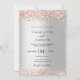 Um convite formal para o casamento. Um fundo de olhar mal prateado. Decorado com faíscas rosa douradas, confetti. Personalize e adicione seus nomes e detalhes da festa.