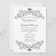 Um belo ornamentado de prata, preto e branco floresce um convite formal para o casamento. Edite o nome da noiva e do noivo, os detalhes do casamento e a recepção.