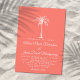 Convide seus convidados para ajudá-lo a comemorar seu dia especial com este convite elegante que inclui um roteiro moderno e texto branco com uma palmeira artística. Um fundo de coral sólido está na frente e atrás da placa. Perfeito para uma praia ou um local de casamento ao ar livre. Se precisar de ajuda ou de um pedido personalizado, por favor, entre em contato comigo.