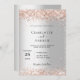 Um convite formal para o casamento. Um fundo de olhar mal prateado. Decorado com faíscas rosa douradas, confetti. Personalize e adicione seus nomes e detalhes da festa.