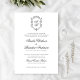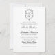 Este clássico convite formal clássico de casamento preto e branco apresenta um design sofisticado e intemporal limpo, com seu roteiro de caligrafia vintage e elegante crista de monograma floral.
