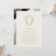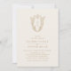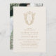 Este clássico convite para casamento de creme e foto de ouro da Coleção Daphne é perfeito para um casamento tradicional. O simples, porém clássico, design apresenta um elegante e eterno monograma da crista ornamentado, com flores e verde à volta das iniciais do casal. Personalize a parte de trás do seu convite de casamento com a sua foto de noivado favorita.