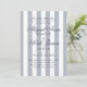 Este elegante convite de casamento apresenta um sofisticado fundo listrado em tons de azul. A design exumenta uma estética formal do clube country, fazer-a perfeita para comemorações de escala alta. Um monograma da crista traseira adiciona um toque personalizado, melhorando a elegância e o encanto gerais desse belo convite.