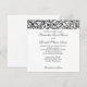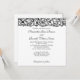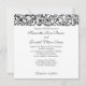 Um convite de casamento preto e branco com trabalho de arte de colheita no topo.