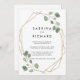 Este verde-geométrico dourado para trás e o convite formal para o casamento é perfeito para um casamento elegante. A design apresenta galhos botânicos verdes de eucalipto, desenhados à mão, e folhas enfeitando uma elegante armação de ouro. Salve o papel, incluindo mais detalhes na parte traseira do convite em vez de em uma placa de gabinete separada.