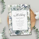 Um belo convite de casamento floral azul, verde e branco. Formal e elegante.