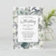 Um belo convite de casamento floral azul, verde e branco. Formal e elegante. Quatro campos de texto para você fazer o seu.