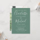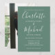 Com nomes de estilo característico, este convite de casamento elegante pode ser personalizado com suas informações em letras elegantes em um fundo verde eucalipto com a foto escolhida no verso. Você pode personalizar a cor do fundo para combinar com o tema do seu casamento. Criado por Thisisnotme©