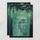Uma ilustração com uma aquarela esbranquiçada da folhagem esmagadora em verde esmeralda, cintilante com luzes de fadas e poeira mágica, decora este primavera de verão a foto-convite de casamento com um tema de floresta encantado e uma cobertura de arco de boho com uma borda falsa-ouro (isto é um efeito digital, não ouro real). Um convite elegante e moderno para um casamento de conto de fadas. Perfeito para noivas que amam o cenário florestal de conto de fadas, o tema da floresta de fadas ou do jardim de fadas e esmeralda verde, mauve e ouro.