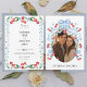 Cerejas doces e moldura de aquarela azul em um design simples. Adicione sua foto ao contrário com nomes para personalizar. Um convite perfeito para primavera ou casamento de verão. Absolutamente adorável. 100% de satisfação do cliente todos os dias na Zazzle. Modelo