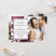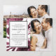 O convite de casamento elegante traz lindas flores de burgundy em um fundo branco com belo roteiro e duas de suas fotos favoritas.