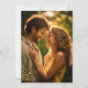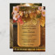 Um convite de casamento para o tema do vinho romântico, que inclui uvas e rosas coloridas de pêssego num barril de vinho de madeira rústica com fundo de ouro artístico estirado, com luzes festivas de cordas. No verso está sua própria foto, assim como um modelo de código QR fácil de personalizar (ou excluir).