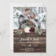 Este convite para casamento de fotos de inverno de inverno é perfeito para um casamento de celeiros de campo rústico. O design apresenta belas flores brancas e borboletas, de cor aquosa, com pinheiros, bagas sagradas e verde de eucalipto sobre fundo de madeira. Este é um esquema de cores perfeito para um casamento no inverno. Faça este convite seu, incluindo seus nomes de fotos e todos os detalhes do seu casamento. Para mais personalização, use a ferramenta design avançada para modificar este modelo.