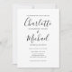 Apresentando nomes de estilo de assinatura, este elegante convite de casamento preto e branco pode ser personalizado com suas informações em letras quicas e sua foto especial no verso. Projetado por Thisnotme©