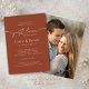 Convite De Casamento De Fotos De Script Moderno Terracotta Elegante. Este convite de casamento elegante apresenta uma escrita moderna e tipografia com uma fotografia do tamanho do cheio no verso.