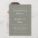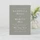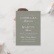 Este belo convite de casamento verde de sábio apresenta uma foto de sangria de cheio e uma elegante tipografia branca.