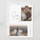 Anuncie seu dia especial com nosso casamento de fotos Rustic Script 2 Salve o convite de data. Este elegante design apresenta um esquema de cores preto e branco minimalista e um roteiro manuscrito. Perfeito para casamentos rústicos e temáticos com o país, esses cartões salve a data oferecem uma solução econômica, mas na moda para qualquer casal.