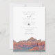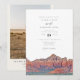 Este convite para o casamento apresenta uma pintura aquosa do lindo Sedona, linha do horizonte de Arizona e uma simples combinação de fontes modernas. Edite com facilidade o texto *maioria* para atender às suas necessidades de eventos. Mude a cor de fundo e adicione sua própria foto ao fundo, junto com o site do seu casamento, para um toque pessoal. Este convite de casamento é perfeito para o seu casamento ou evento no deserto da boêmia.