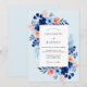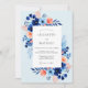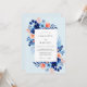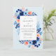 Um fundo suave azul celeste define um palco tranquilo para este vibrante design aquarela. Anêmonas profundas azul-navy e delicadas flores de pêssego criam um contraste marcante, complementado por uma variedade de pétalas azuis e folhas verdes arejadas. O arranjo botânico evoca uma atmosfera fresca à beira-mar, tornando-o ideal para um evento romântico costeiro ou de primavera.
