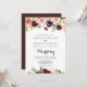 Este convite de casamento roxo e roxo, cor-de-rosa, é perfeito para um casamento simples. O design pintado à mão apresenta folhas verdes, cor-de-rosa deslumbrante, pincelada, púrpura, vermelha, branca e lenhosa, pessoas bem organizadas em pequenos buquês fofos. Salve o papel, incluindo mais detalhes na parte traseira do convite em vez de em uma placa de gabinete separada.