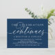 Moderno minimalista romântico Caligrafia Simples Script Azul-Marinho, cartão de convite de casamento fuga (A celebração continua). É perfeito para o anúncio do seu casamento fuga e celebração da festa, após o seu melhor dia. Adicione seus detalhes em fonte / letra preta correspondente.