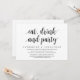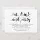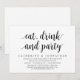 Cartão de convite de casamento com tema de roteiro moderno, fuga de casamento (Coma, Beba e Festeje). É perfeito para o seu jantar de casamento casual à beira do lago, dança e festa de fuga de casamento.
