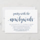 Script Moderno em tema Azul Navy sofisticado, cartão de convite de casamento fuga (Festa com os Recém-Casados). É perfeito para o seu jantar de casamento fuga casual à beira do lago, dança e festa.