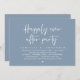 Tema moderno em azul empoeirado, cartão de convite de casamento fuga (Festa Felizes para Sempre). É perfeito para o seu casamento recepção de fuga / festa de celebração pós-casamento. Adicione seus detalhes em fonte / letra preta correspondente.