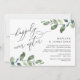 Lindo Design Moderno Romântico, em tema de aquarela de folhas de eucalipto, Anúncio de Casamento Fuga, Cartão de Convite (Felizes para Sempre). Isto é perfeito para a recepção do seu casamento e festa de celebração pós-casamento. Adicione os detalhes da celebração do brunch / jantar de fuga.