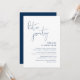 Este é o convite de casamento para uma fuga romântica, com design minimalista / minimalista sofisticado em azul-marinho (vamos festejar)