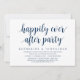 Roteiro moderno em tema azul naval sofisticado, cartão de convite de casamento fugitivo (Festa Felizes para Sempre). É perfeito para o seu jantar de casamento casual à beira do lago, dança e festa.