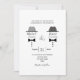 Celebre seu amor com este charmoso convite de casamento gay preto e branco apresentando dois noivos representados por ilustrações clássicas de chapéu e gravata borboleta. O layout limpo e a paleta monocromática ousada tornam-no ideal para casamentos modernos, minimalistas ou formais do mesmo sexo. Inclui texto editável para seus nomes, data, local e detalhes de RSVP. Perfeito para noivos elegantes que desejam uma maneira divertida e elegante de anunciar seu dia especial.