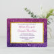 Convite de casamento com um rico elegante. O fundo composto por pedras cintilantes rosadas e roxas. Tendência e vibração feminina. Um retângulo com uma borda faux-gold-foil colocada sobre cima com o seu dentro de texto.